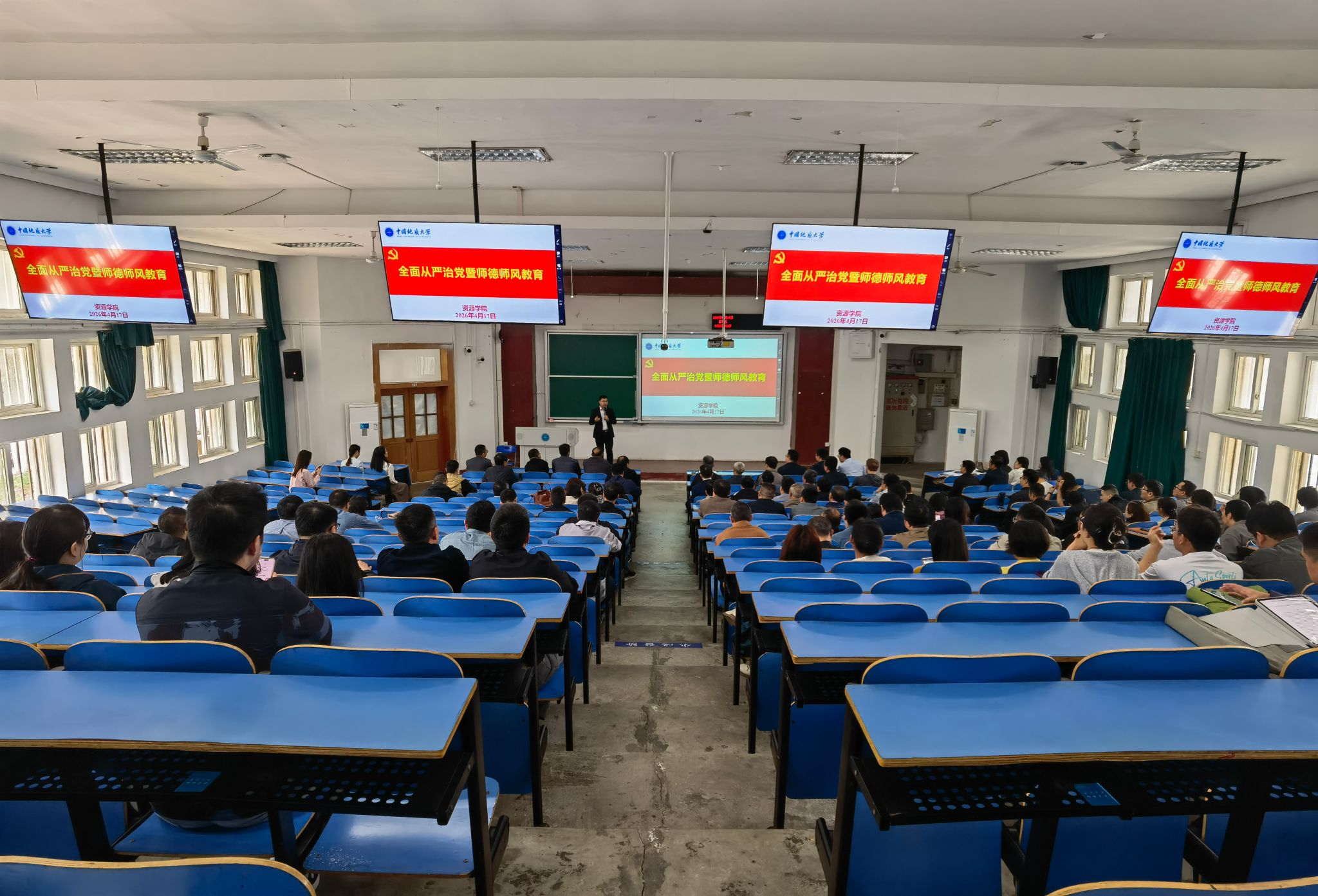汪再奇作“以严明纪律筑牢办学治校根基,以自我革命涵养清正育人生态”专题报告。他指出,教育领域反腐倡廉是全面从严治党的重要组成部分,也是高校办学治校的基础性工程,事关党的教育事业的健康发展和立德树人根本任务的落实。高校教师必须深刻认识教育腐败的严重危害性,持续强化师德师风与校风学风建设,筑牢拒腐防变的思想防线。随后,他结合高校领域招生腐败、违规套取科研经费、学术不端、违规吃喝等典型案例开展警示教育,深入剖析问题根源和惨痛教训,以案明纪、以案说法,并带领全体教职工学习了《中国共产党纪律处分条例》相关条款。