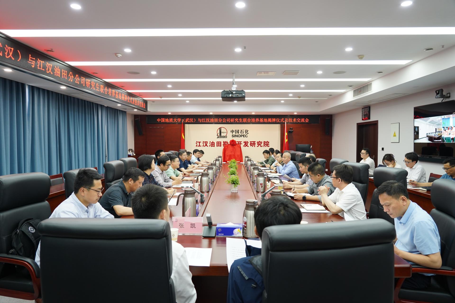 严德天和包汉勇代表双方签署培养协议并授牌。包汉勇代表江汉油田分公司对地大老师们实地访问表示欢迎,对学校多年来为油田发展给予的支持表示感谢。他表示,此次签约为校企合作搭建了新平台、迈上了新台阶,双方将以研究生联合培养为契机,深入开展科研攻关,加强技术交流,更好地推进产学研深度融合,实现校企全面深入合作。