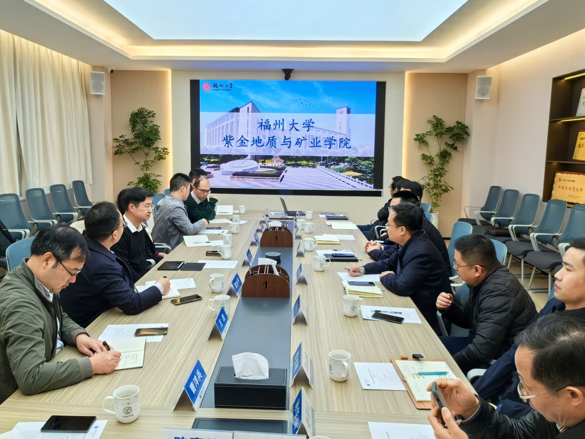 (通讯员 吴超 摄影 卢倩)12月8日,福州大学党委常委、副校长夏帆教授带领紫金地质与矿业学院党委书记徐雪玉、院长衷水平、副院长王浩和紫金矿业集团有限公司地勘院副院长刘光永等一行9人到学院调研交流,洽谈合作。学院党委书记高复阳、院长严德天,资源科学与工程系班子成员和教师代表参加座谈。高复阳主持会议。
