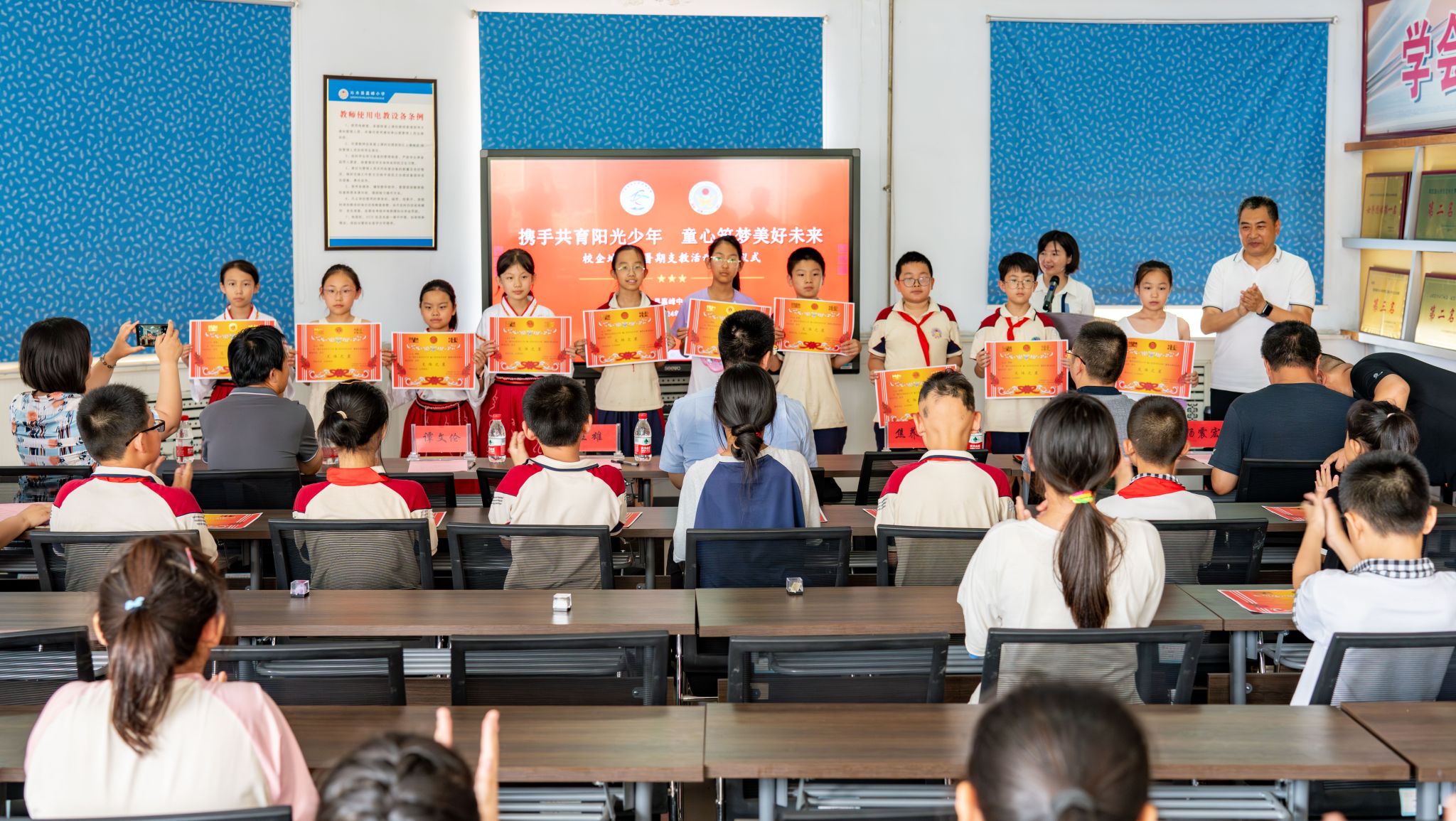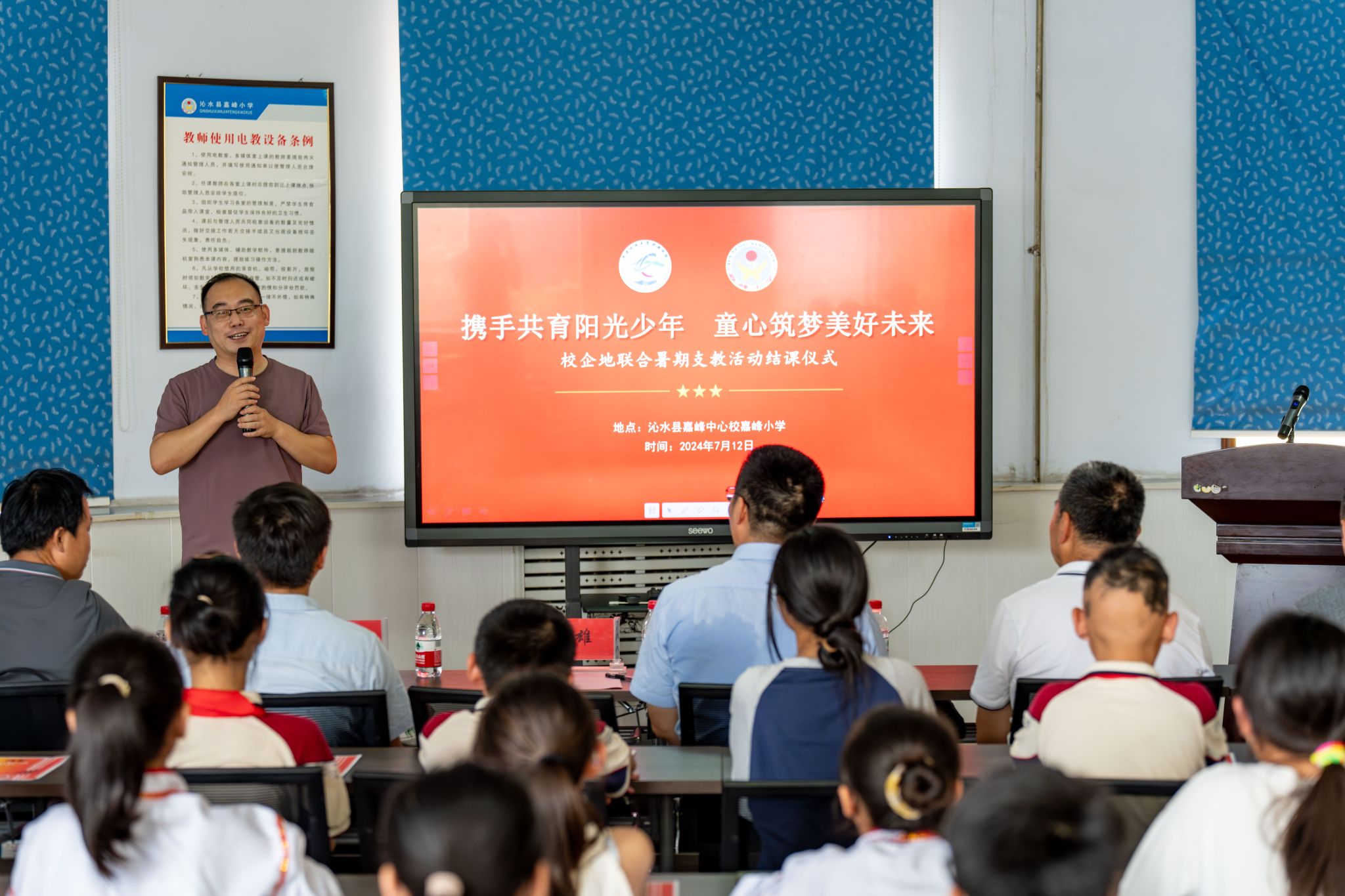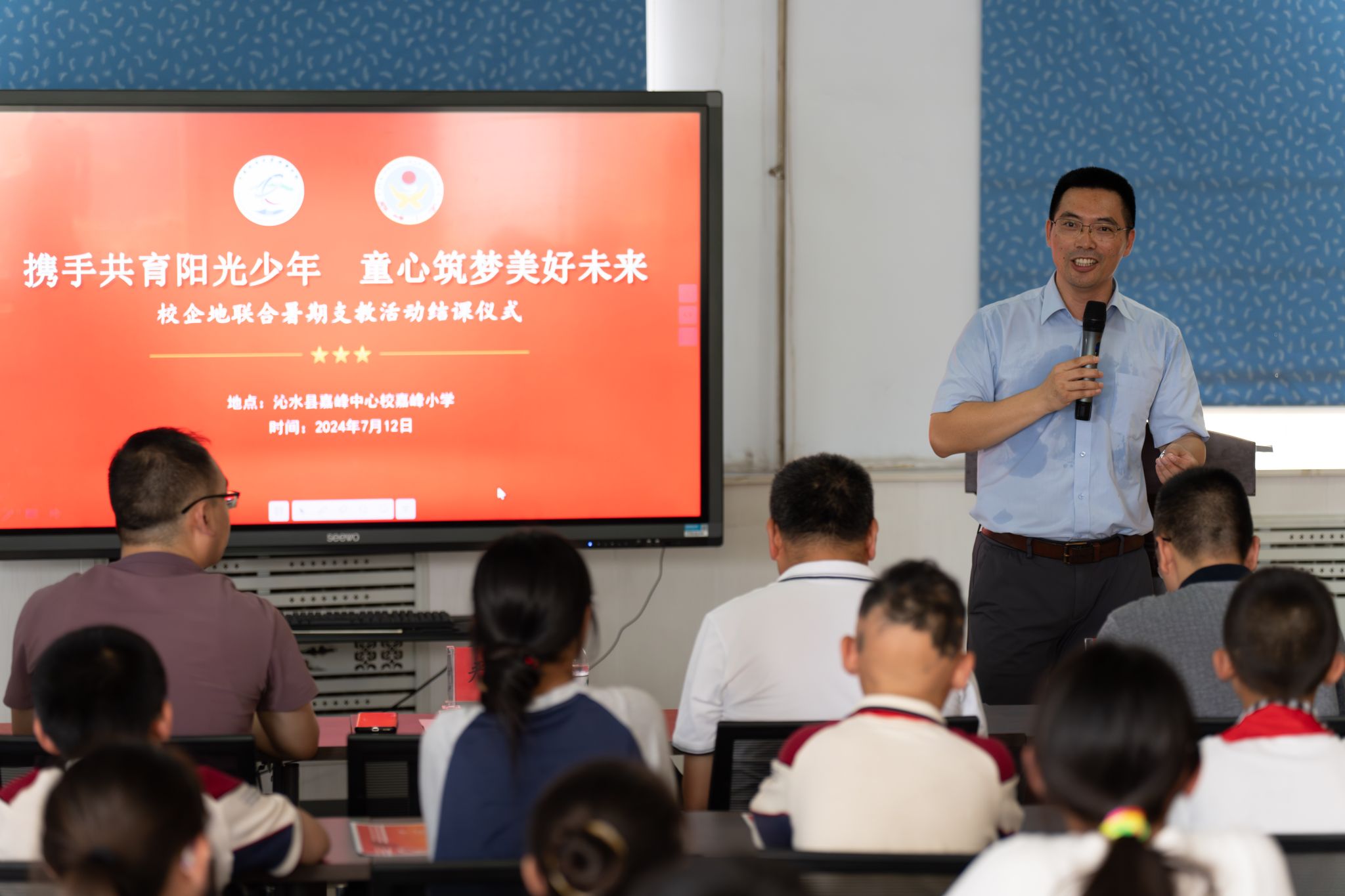 7月12日下午,由williamhill英国、共青团沁水县委联合举办的“携手共育阳光少年 童心筑梦美好未来”暑期支教活动结课仪式在沁水县嘉峰小学顺利举行。williamhill英国院长严德天、党委副书记谭文伦、“全国模范教师”焦养泉、盆地矿产系党支部书记王小明、盆地矿产系主任甘华军、副主任吴立群,共青团沁水县委书记王雄,嘉峰镇嘉峰中心校校长杨震宏,嘉峰镇嘉峰小学教职工、学生以及“牵手筑梦”实践服务团成员参加仪式。