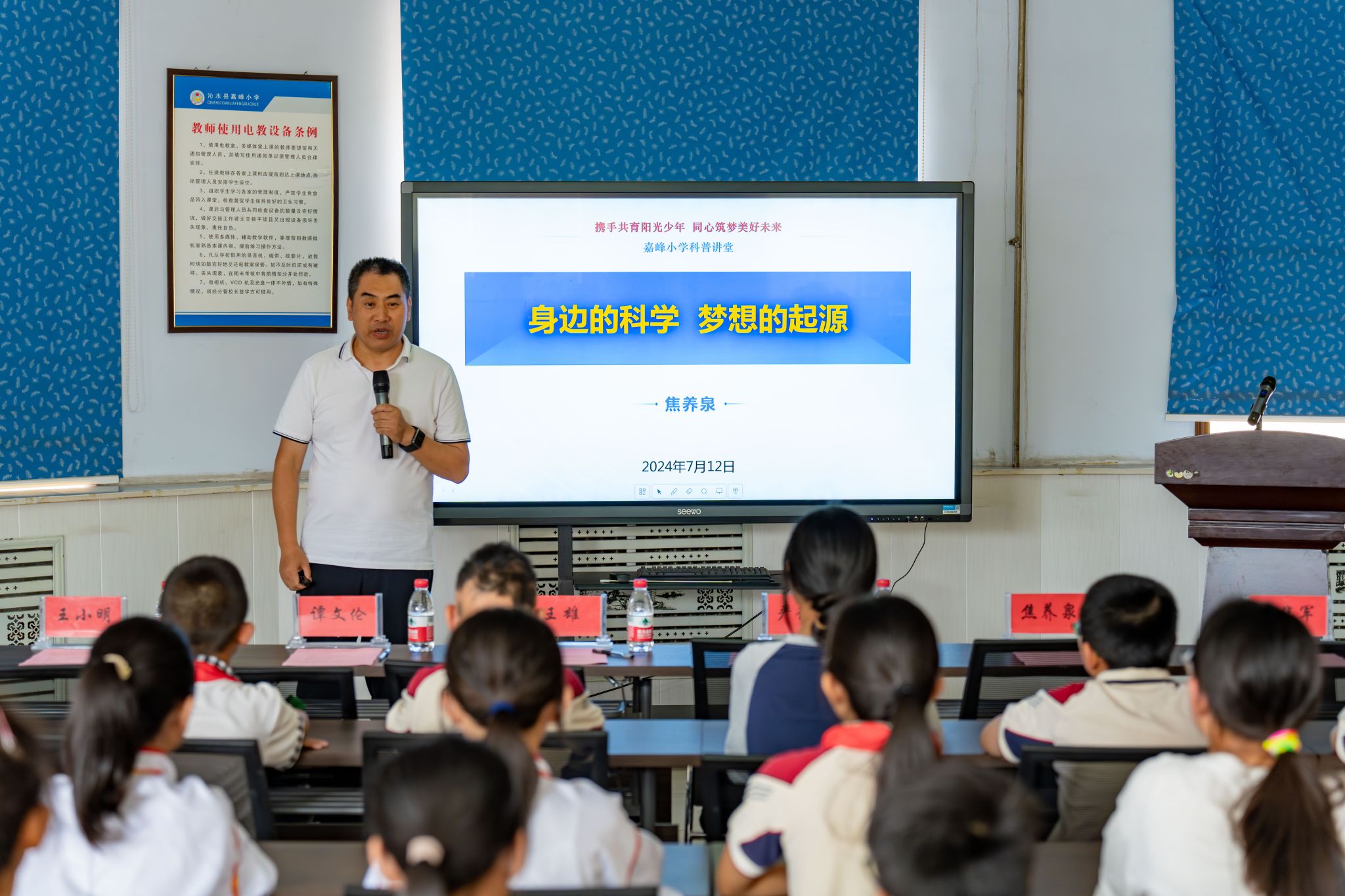 焦养泉为嘉峰小学学生讲授科普课。他以沁水县本地富有的煤层气资源为导入,深入浅出的为同学们讲解了煤炭、煤层气的成因,以及煤层气资源在生活中的应用,引起同学们的热烈掌声。焦养泉寄语同学们认真学习,打好成才基础,并鼓励同学们树立远大理想,点亮逐梦之路。