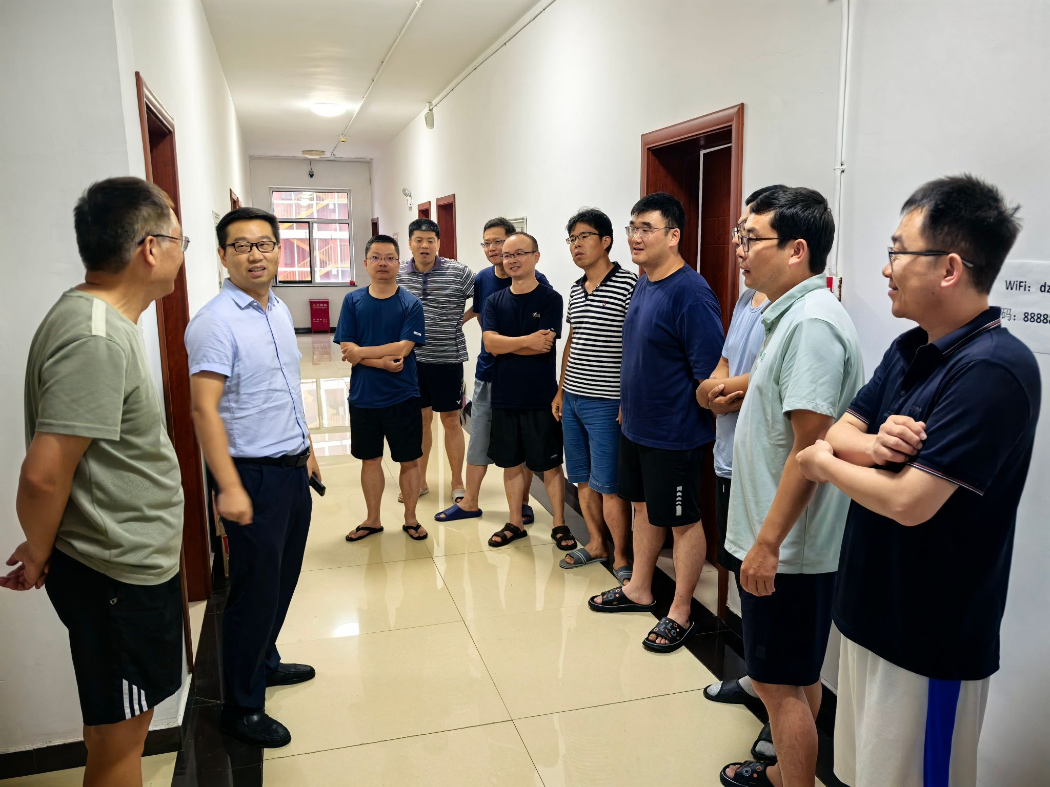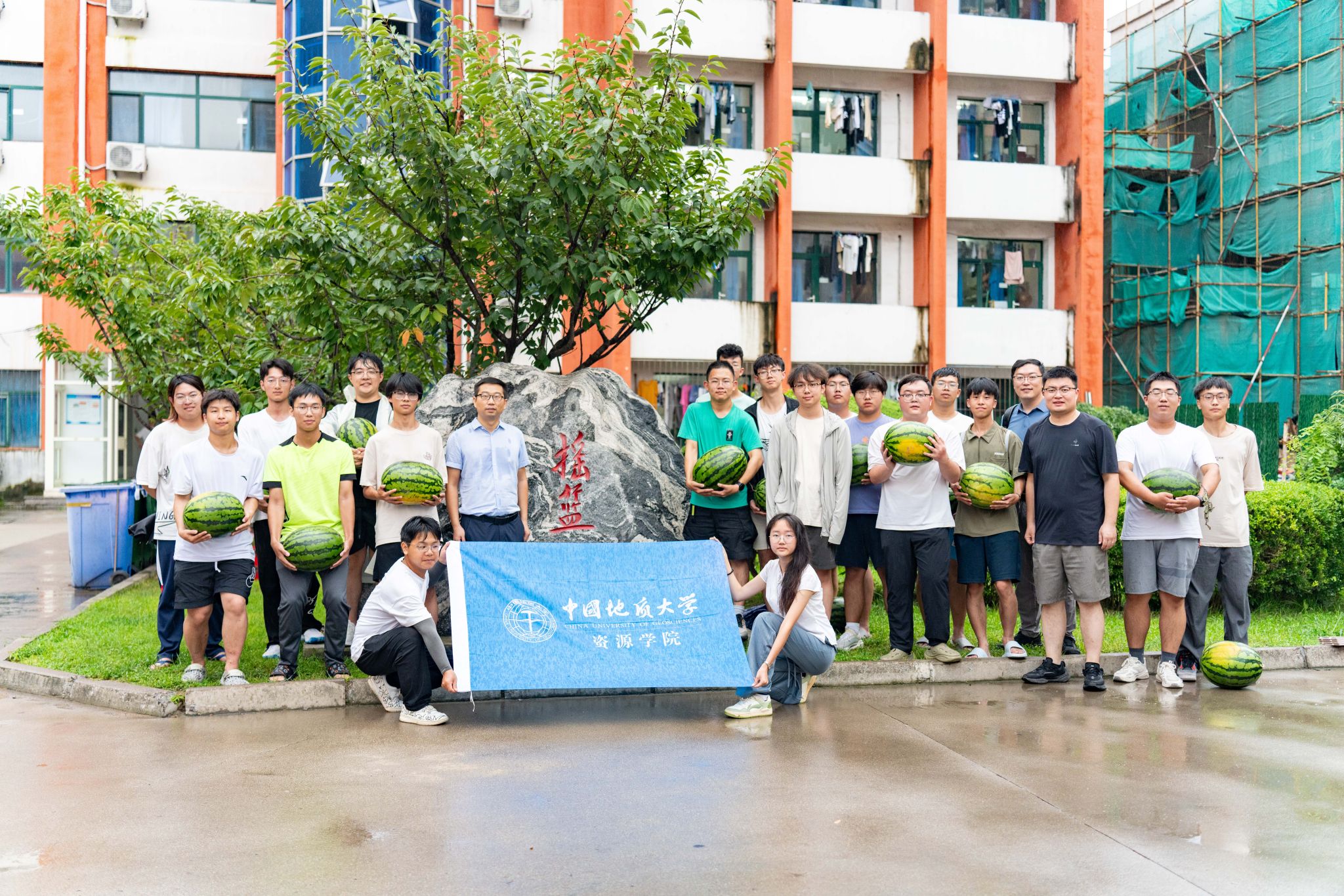 在学生公寓大厅,谭文伦为同学们发放消暑慰问品。他询问了同学们的食宿情况和实习体验,提醒实习期间要注意个人身体状况,希望同学们重视实践探究能力的锻炼,勇于提问、善于提问,在提问求证中将书本理论迁移至野外地质现象中,打好专业基础,浓厚专业兴趣。