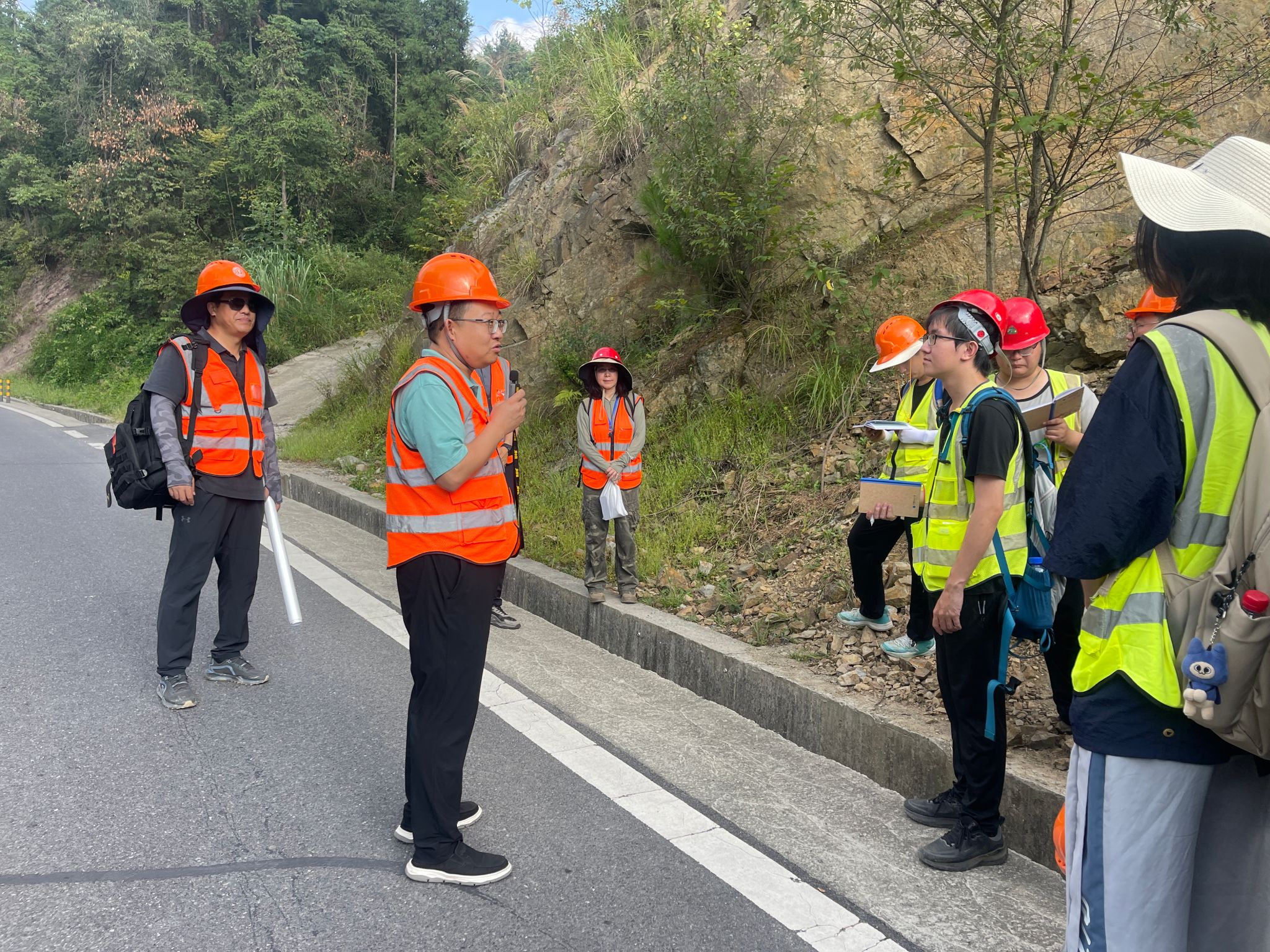 9月9日,高复阳、李占轲一行踏勘青林口教学线路,察看野外实践教学开展情况。在现场,学院实习队队长李嘉光介绍了石油工程(四周)和资源勘查工程(二周)的野外教学安排和进展,实习队学术指导刘晓峰介绍了教师集体备课情况。高复阳、李占轲与同学们共同聆听了沈传波、赵葵东、阮小燕等老师的授课,了解了资源勘查工程固体矿产和油气资源方向学生野外路线学习进展。高复阳介绍了暑假赴行业单位走访调研的交流情况,结合学院校友在单位的成长故事,鼓励同学们坚定“国之所需,我之所向”的专业报国志向,培养求实进取、勇攀高峰的宝贵品格,珍惜在野外实习机会,锤炼过硬地质工作本领,为未来事业发展打下坚实基础。
