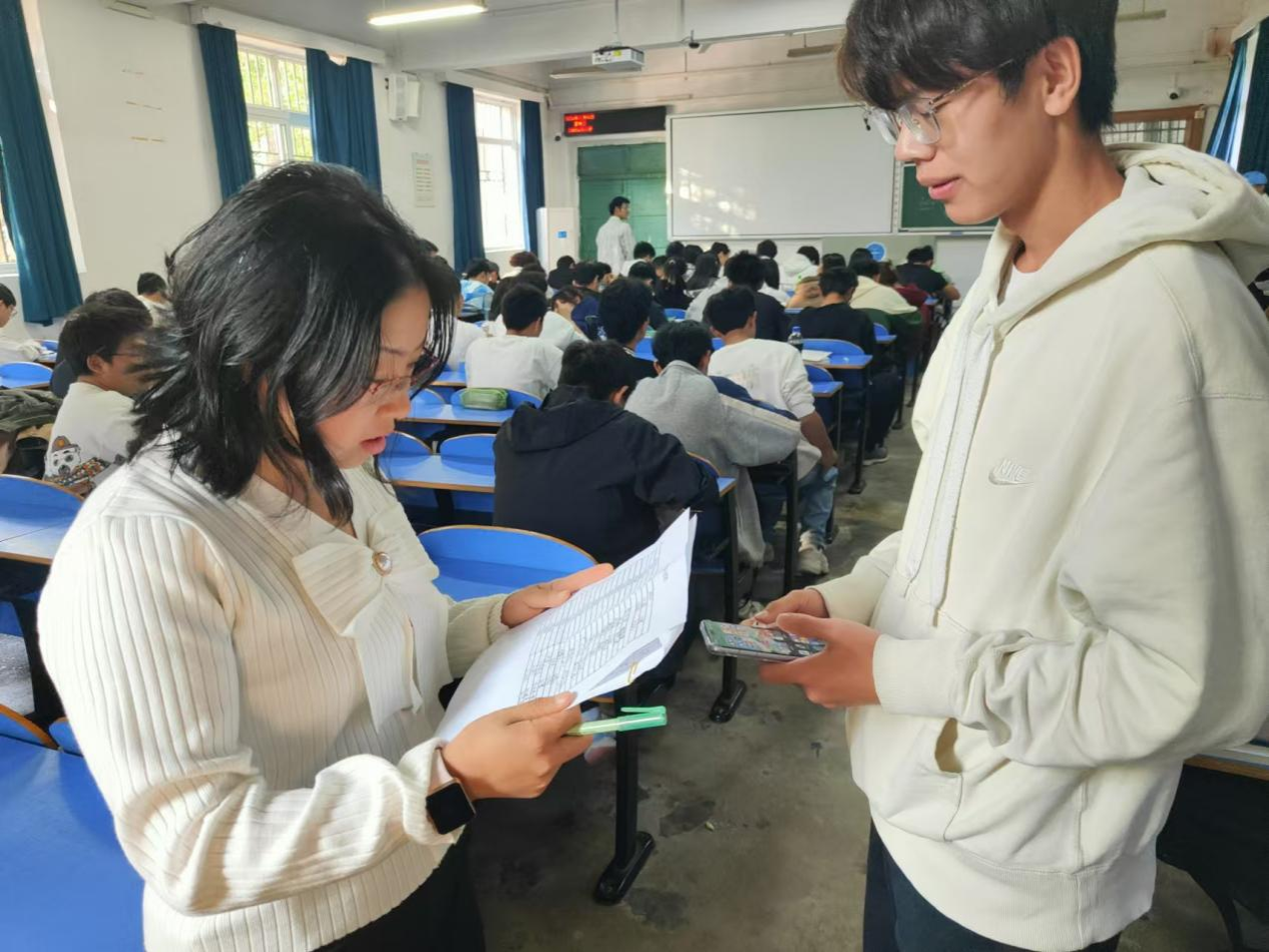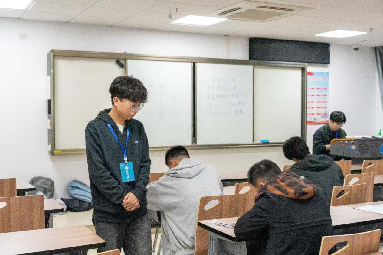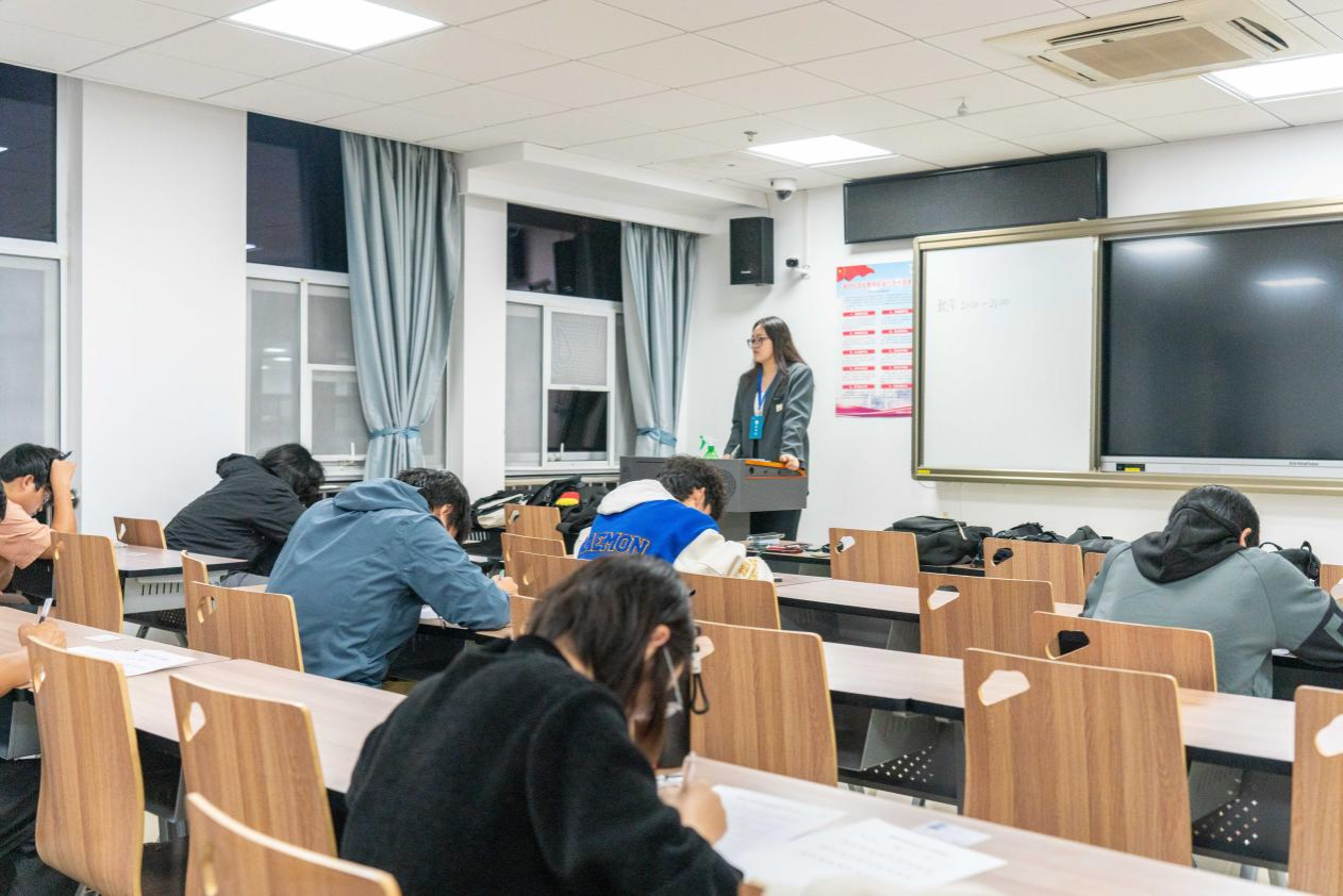 为检查和了解学生入学以来的学习情况,帮助同学们查缺补漏,11月3日晚,williamhill英国学生会学习部在东区教学楼组织2024级本科生第一次月考,助理班主任、驻班党员担任监考员,考试科目为高等数学和大学英语。