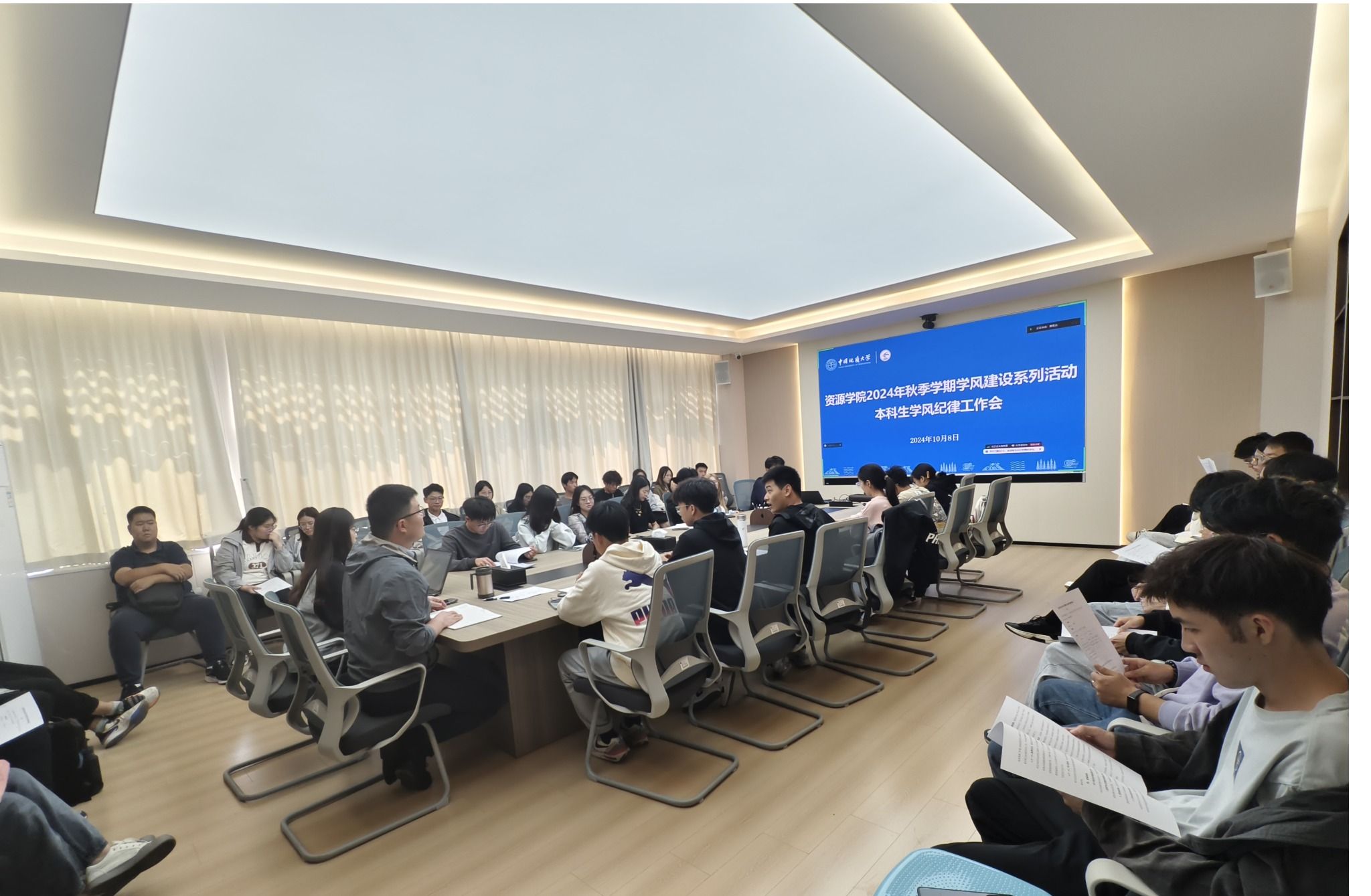 10月8日,williamhill英国举行“严在地大,学在资源”——2024秋季学期学风建设活动启动仪式,从榜样引领示范、学习能力培养、强化课堂管理、结对困难帮扶四个方面对学风建设活动进行介绍,现场宣读学风建设倡议书,学院党委副书记谭文伦、副院长李占轲参加并寄语同学们端正态度,规范行为,共筑优良学风。