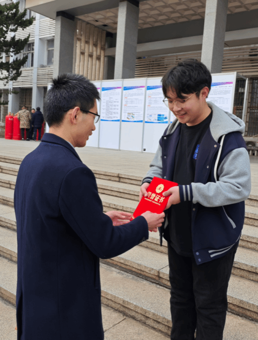 学院副书记谭文伦、盆地矿产系主任甘华军为科普展板获奖者颁奖。