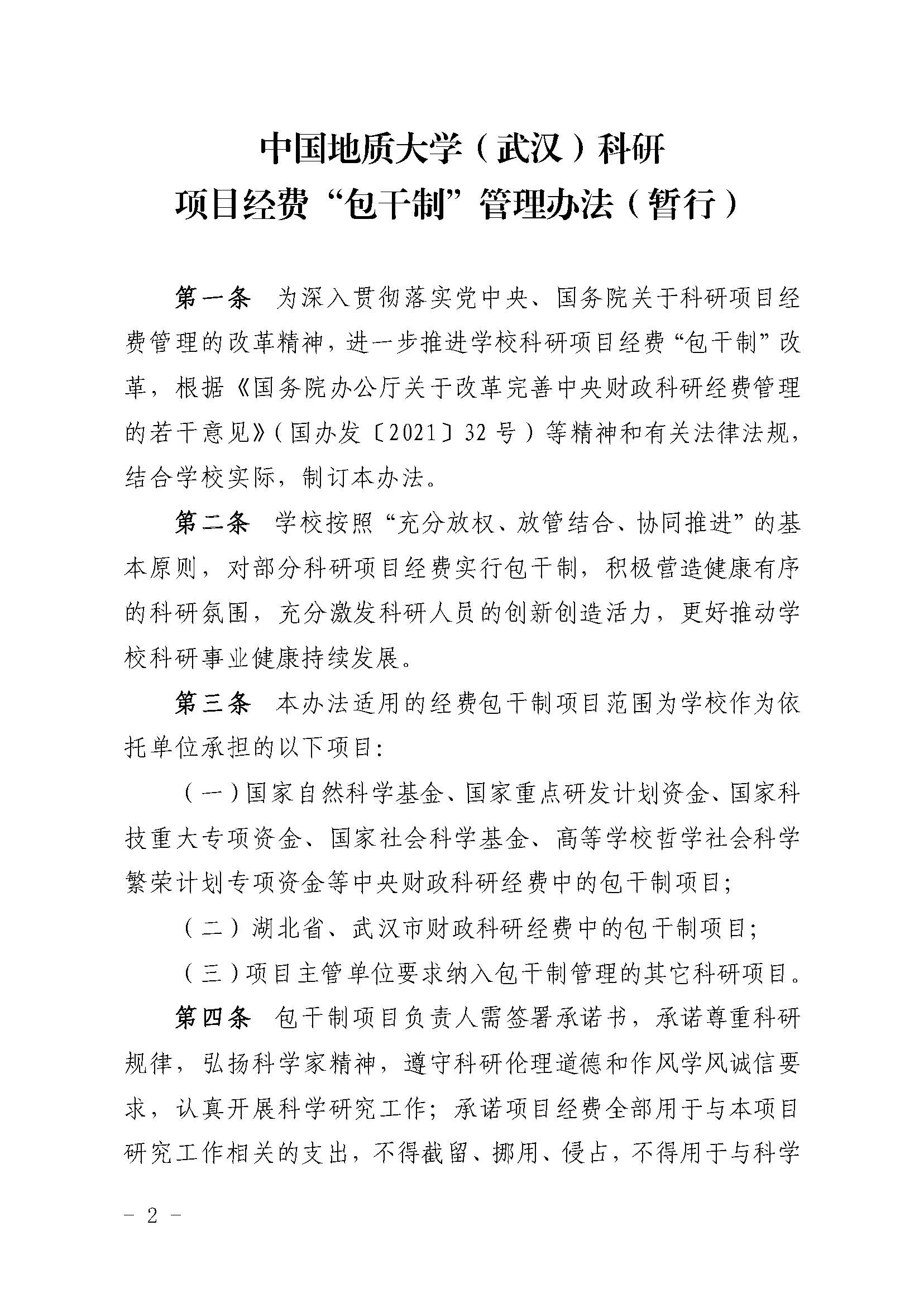 William威廉英国(武汉)科研项目经费“包干制”管理办法(暂行)