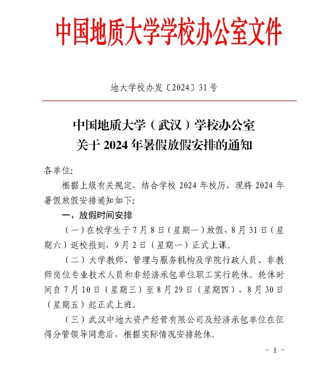 William威廉英国(武汉)关于2024年暑假放假安排的通知
