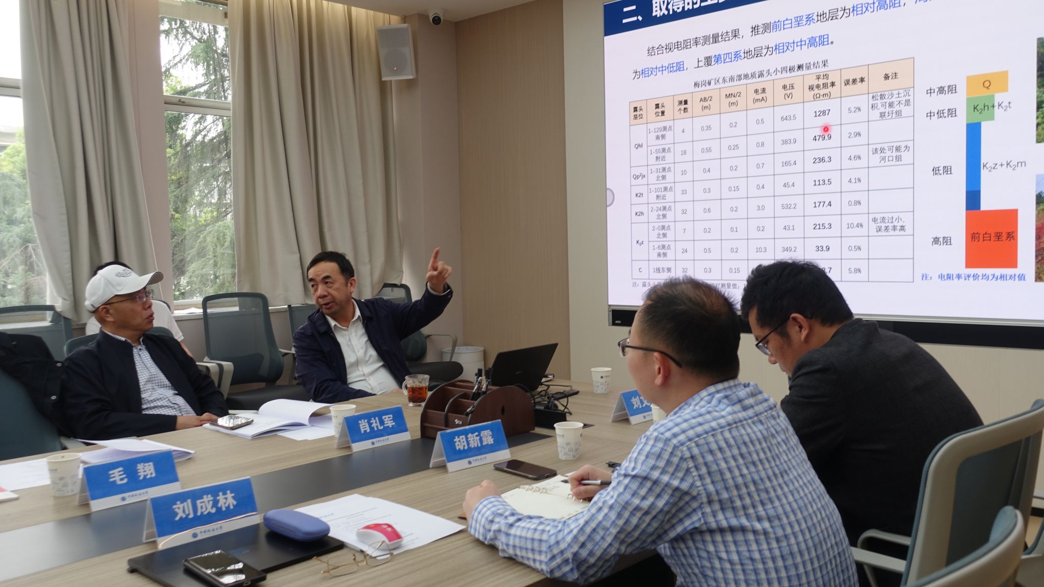 汪再奇对中国石化集团新星石油有限责任公司与我校的深度合作表示感谢,并对参会人员一行表示热烈欢迎。刘成林汇报项目进展,梳理总结了开展的野外地质调查、重点工作区确定、遥感解译、航磁解译、电磁测量、地球化学分析及探井孔位设计等研究工作,提出项目研究的创新点,并对下一步工作安排进行了规划。