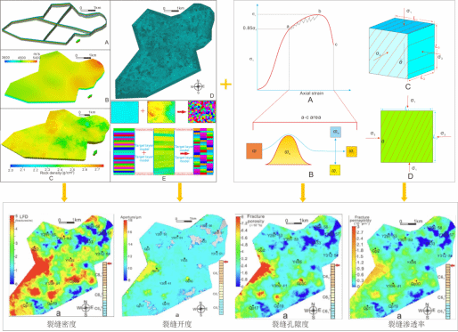 该技术针对油气储层应力与裂缝系统复杂,参数预测难、建模精度较低、应用效果不佳等问题,采用“古应力场产生裂缝、后期应力场改造裂缝”的思路定量预测构造裂缝三维分布。在古今构造应力场数值模拟的基础上,结合断裂力学、应变能理论及能量守恒定律,优选最小作用量原理、最小耗能原理,构建力学平衡与能量耗散耦合下的复合破裂准则,建立多期构造裂缝密度地质力学预测模型,揭示储层裂缝关键参数空间发育规律。