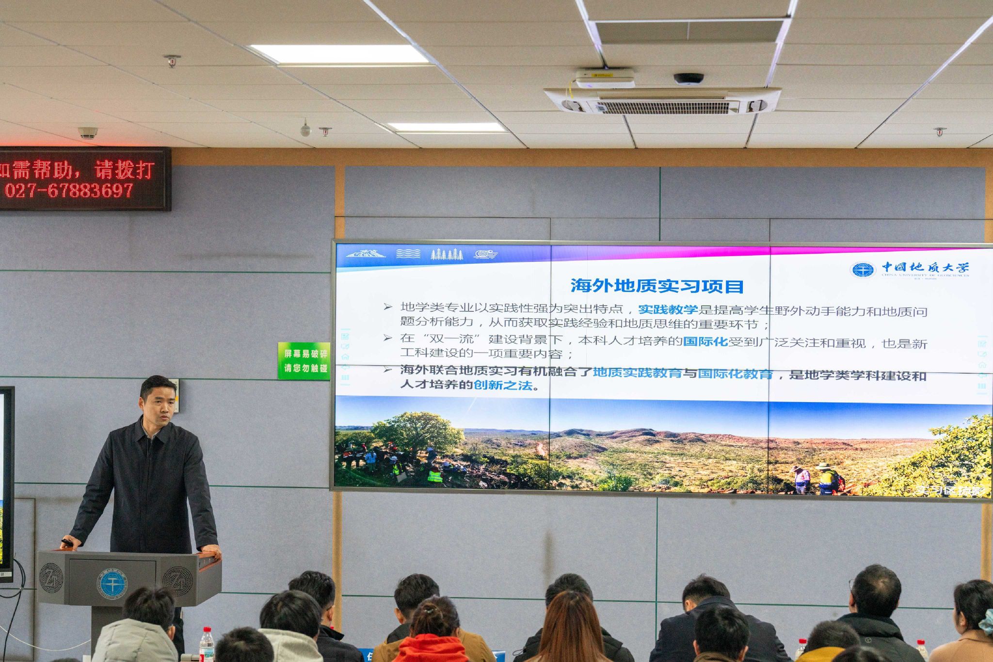 李占轲从海外地质实习背景、实习内容和实习成效三个方面介绍williamhill英国国外交流学习项目情况。他表示,学院海外地质实习项目经过多年发展,深度融合专业实践与国际化教育,是推进“双一流”学科建设、增强国际化人才培养内涵的重要方式。他讲到,澳大利亚海外实习项目通过野外实践、顶尖油气企业参访和国际名校的交流,成功构建了“野外实践+产业参访+学术交流+文化浸润”四位一体的海外实践新模式,拓宽学生国际视野,强化专业实践能力,是探索国际化人才培养重要路径。